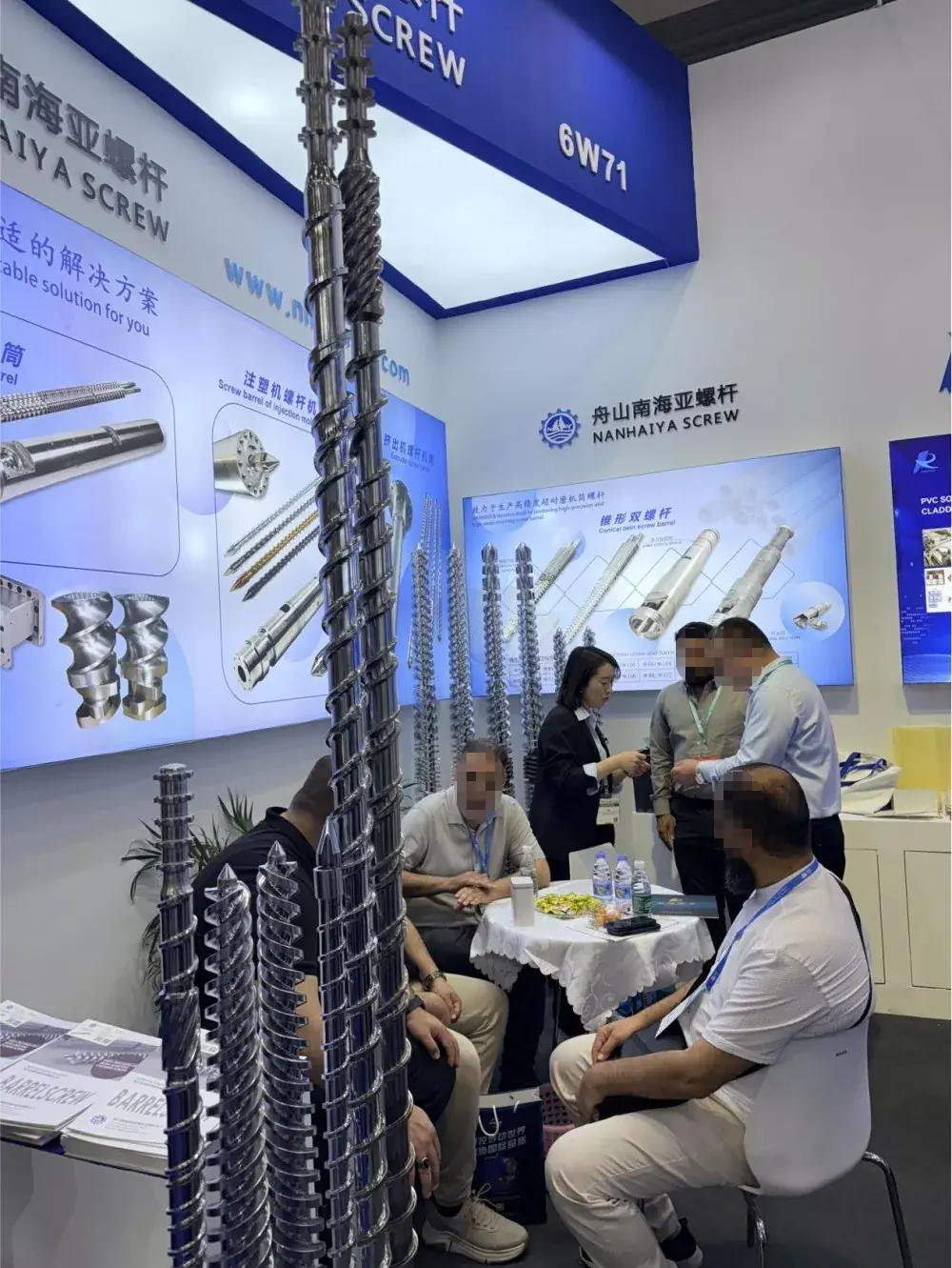 प्रदर्शनीमा दझौशन नन्हैयाबुथ आगन्तुकहरूको भीड थियो। प्रदर्शनीमा प्रस्तुत गरिएका तारा उत्पादनहरू, जस्तै डुअल-एलोय स्क्रू र ब्यारेल र नाइट्राइड स्क्रू र ब्यारेल, प्रदर्शन मापदण्डहरू उद्योग मापदण्डहरू भन्दा धेरैको साथ व्यापक ध्यान आकर्षित गरे। नन्हैयाका उत्पादनहरू सबै 38CrMoAl मिश्र धातु स्टिलबाट निर्माण गरिएका छन् र धेरै प्रक्रियाहरू मार्फत बनाइएका छन्, जसमा क्विन्चिङ र टेम्परिङ, क्यारेक्टराइजेशन, र सटीक मेसिनिङ समावेश छ। विशेष गरी, ब्यारेल डिस्चार्ज पोर्ट, एक कमजोर खण्ड, एक अभिनव, पूर्ण-सर्कल कार्बाइड स्प्रे कोटिंग, 62HRC को आन्तरिक कठोरता प्राप्त गर्दै, 58HRC को उद्योग औसत मा एक महत्वपूर्ण सुधार।